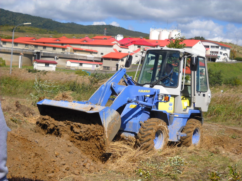 みちのく事務所では、来年の植樹祭に向けて9月25日から26日にかけて土壌改良を松尾鉱山跡地元山堆積場で行いました。25日の午後は小雨が降ったり止んだりの中で大変でしたが、草刈りと盛土をつくりました。盛土まずはバックホーンで穴を掘り、その中へ藁やダンプで運んだ土と腐葉土そしてバーク堆肥と炭を混ぜたところをローターで撹乱するという作業でした。26日は暖かい陽射しの中で作業は順調に進められました。